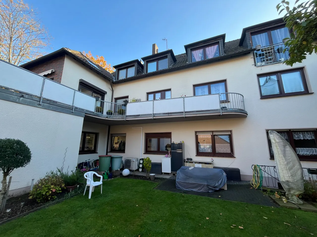 Das 1960 wieder aufgebaute Mehrfamilienhaus umfasst fünf Wohneinheiten mit einer Gesamtwohnfläche von ca. 372 m² sowie eine Gewerbeeinheit mit ca.113 m² Nutzfläche. Die Immobilie steht auf einem ca. 388 m² großen Grundstück und verfügt über zusätzlich zwei Garagen.