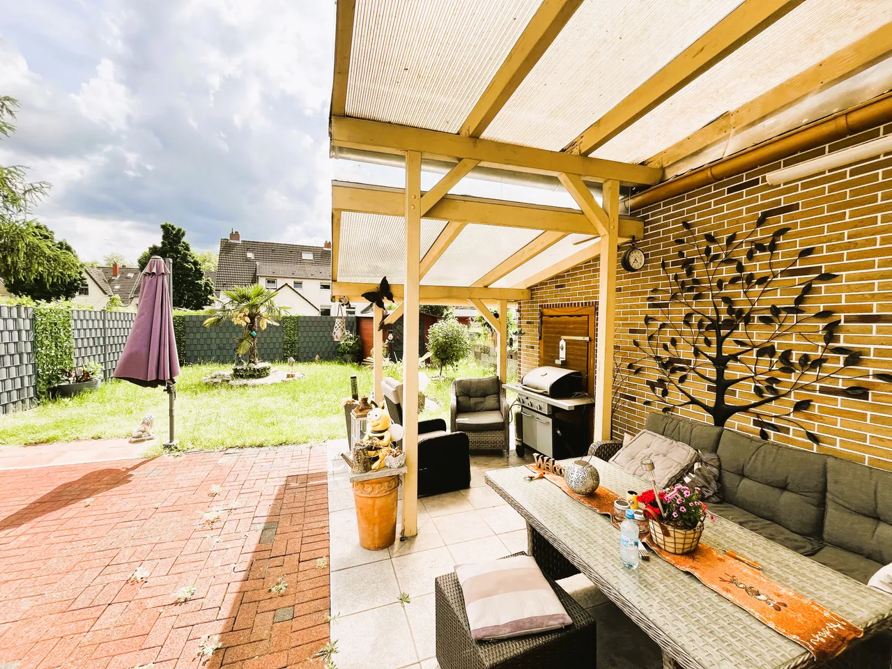 Erdgeschoss: Diele, Badezimmer, Küche, Garten, Carport, überdachte Terrasse