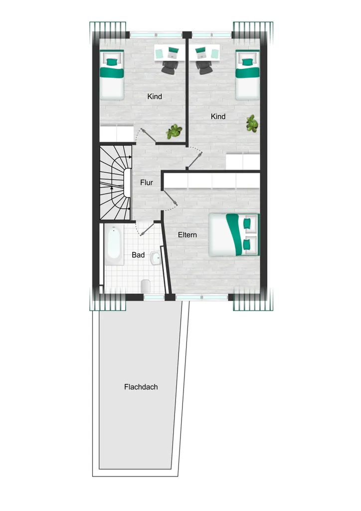 Dachgeschoss: Kinderzimmer, Kinderzimmer, Schlafzimmer, Badezimmer