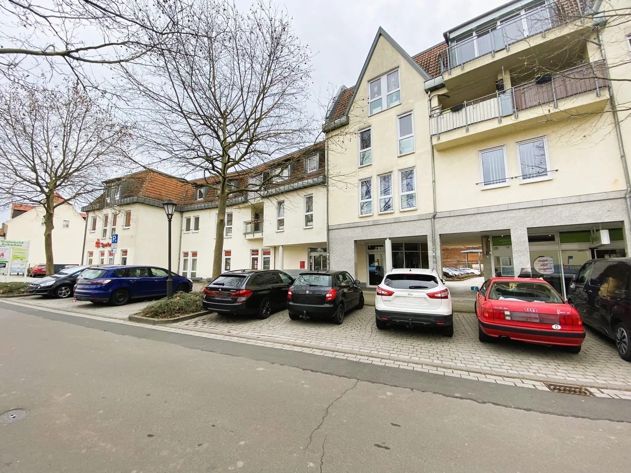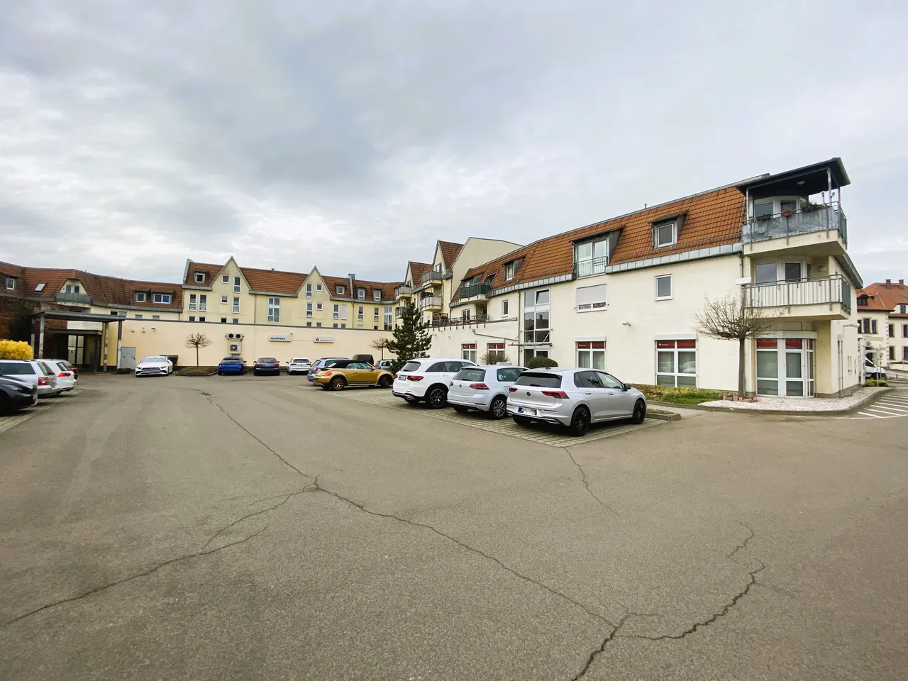 Der Wohn- und Geschäftshauskomplex besteht aus insgesamt 33 Wohnungen und 13 Gewerbeeinheiten (EG, 1. und 2. OG, ausgebautes DG), umfasst 5 Gebäude in geschlossener Bauweise und ist komplett unterkellert. Zum Verkauf steht das Wohnungs-/Teileigentum an den 33 Wohnungen (1., 2. OG und DG) sowie an 2 Gewerbeeinheiten und 8 Stellplätzen. Derzeit ist das Gebäude bis auf eine Wohnung vollständig vermietet.